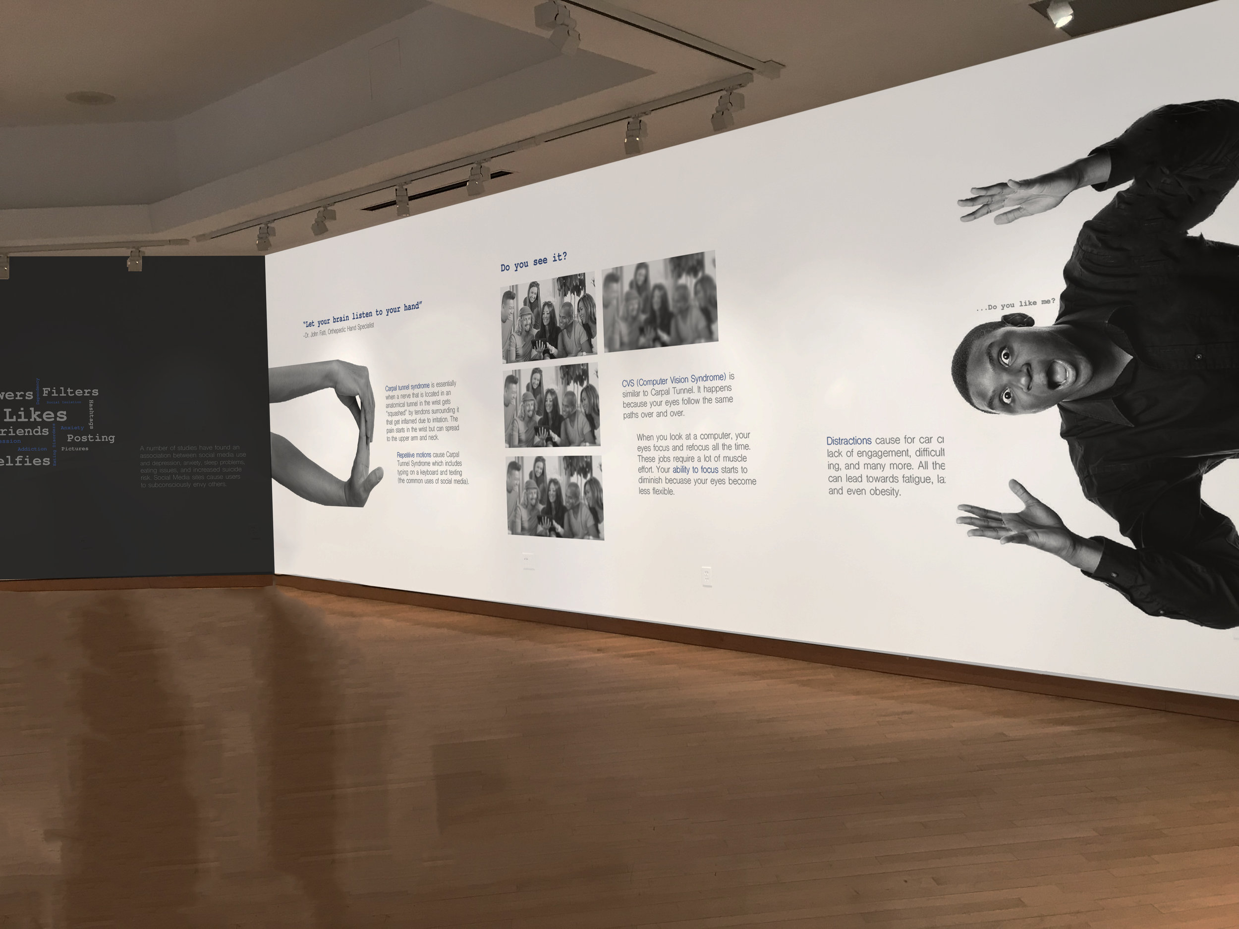 This exhibit is designed to evoke emotion and reflection. Social media has profoundly shaped modern society, influencing how we connect, communicate, and perceive the world. For many, it has become an indispensable part of daily life.